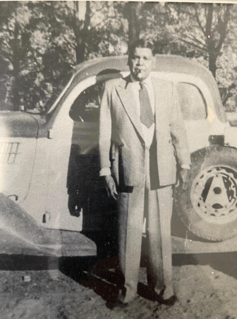 I can recall one such time at Cooladdi when he and Granny were visiting us. He was working on his car and I was perched up beside him looking on when he sent me flying with a nice old backhander. Obviously, he didn’t like me sniffing – I had a snotty nose, and I was making too much noise for him to hear the car engine running. I cursed him under my breath as I walked away and promised myself never to help him fix his old broken-down bombs again. He could ask one of his favourites (Ray or Poey) to help him! He loved Ray and Poey and would take them everywhere he went.